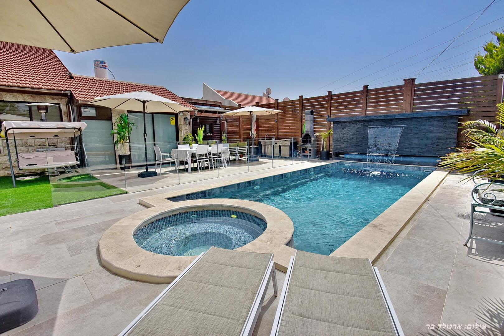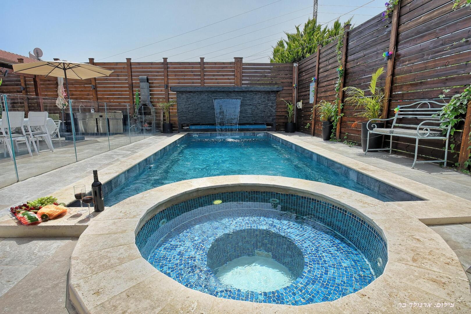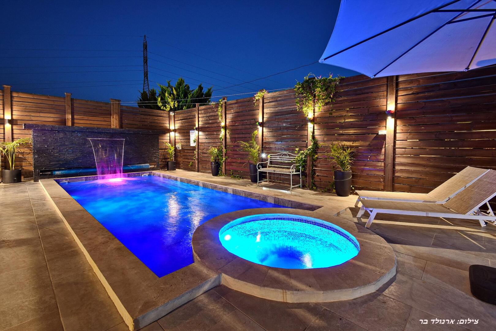 בחצר המתחם תיהנו מבריכת שחייה גדולה - מחוממת בחורף, ג'קוזי ספא, פינות ישיבה, תאורת גן ופינת ברבקיוו מסודרת.